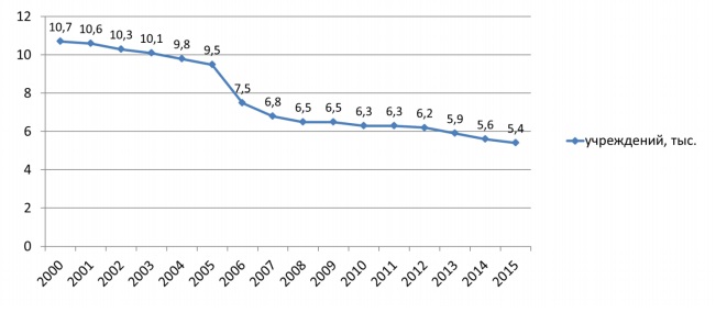 Особенно чувствительно процессы оптимизации ударили по селу: с 2000 по 2014 год количество больничных учреждений в сельской местности сократилось более чем в 4 раза. Число коек в больничных учреждениях также сокращалось в сельской местности интенсивнее, чем в городах – примерно в 1,6 раза против 1,3 раза.