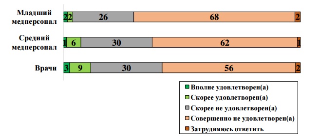 Удовлетворенность медицинских работников уровнем оплаты труда по основному месту работы, %
