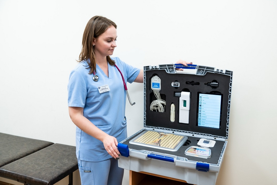 Комплекс включает сертифицированные приборы и зарегистрированное программное обеспечение СамГМУ. АПАК позволяет измерять ключевые параметры здоровья ребенка (вес, артериальное давление, жизненную емкость легких, насыщение крови кислородом), проводить электрокардиографическое исследование (ЭКГ) с автоматической передачей данных через bluetooth-устройства и оперативно анализировать результаты для оценки состояния.