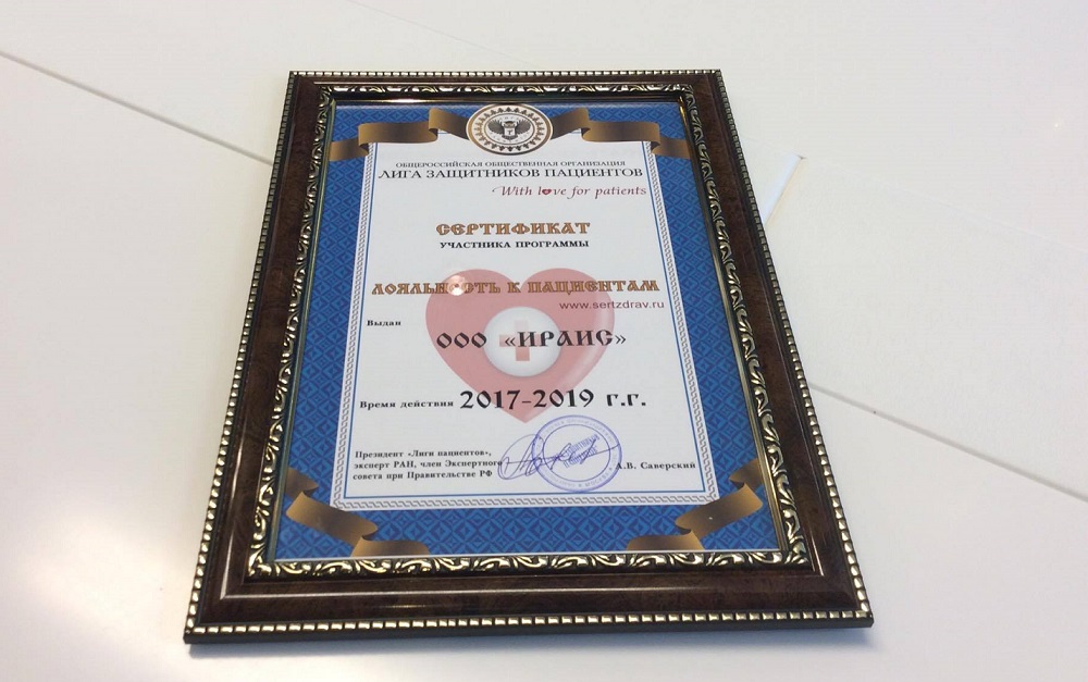 Первый сертификат «Лояльность к пациентам» вручен ОАО «Медицина»