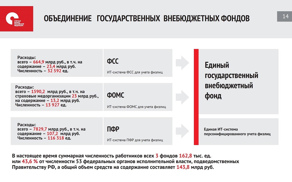 Счетная палата предлагает объединить ПФР, ФСС и ФОМС в единый государственный внебюджетный фонд