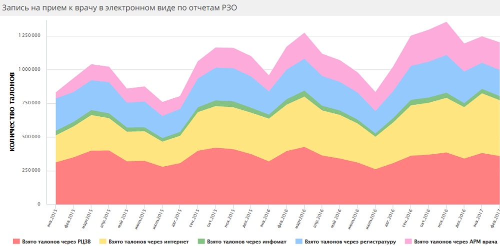 По данным Санкт-Петербургского МИАЦ, доля записи на прием к врачу через регистратуры поликлиник и иных лечебных учреждений впервые за двухлетний период сократилась менее чем до 20%. Минимальный показатель отмечен в январе – 18,5% (в феврале 19,4%) против 30,6% в январе 2015 года. При этом само число таких записей изменилось незначительно, а пропорциональное снижение произошло из-за растущей популярности записи через интернет: в январе-феврале ее доля впервые превысила 40% (42,1% и 41,5% соответственно, т.е. 443 и 415 тыс. пациентов) против 25,5% два года назад. Кроме того, 35-40% горожан получают талоны в районных центрах записи и 3-4% через инфоматы, доля которых не растет.